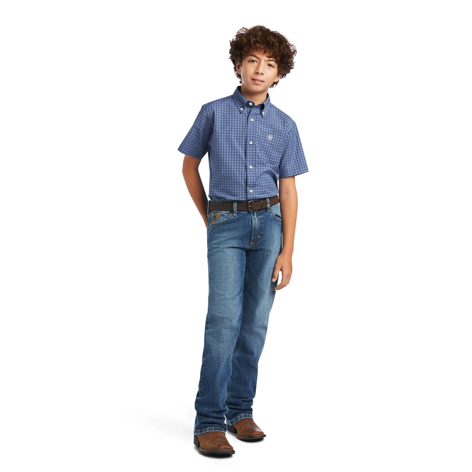 Carbon Blue Plaid Short Sleeve Bryson Classic Fit Button Down Shirt.