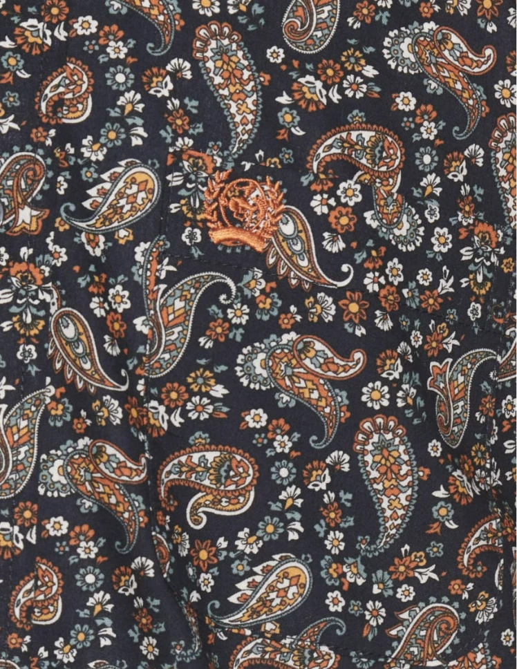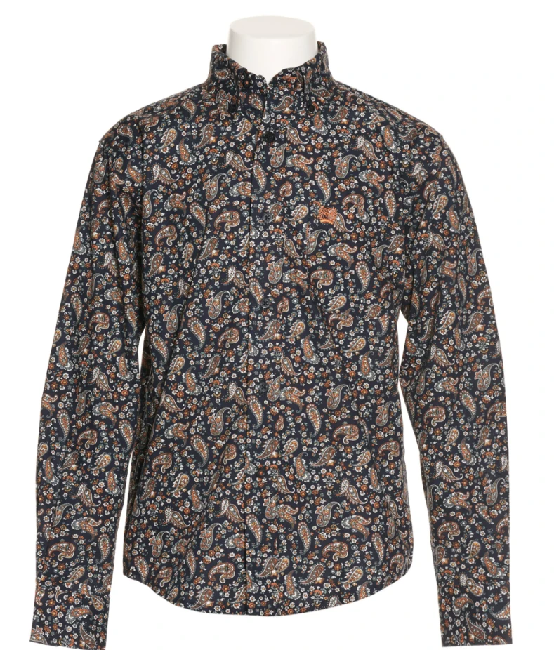 Cinch Boy’s Navy & Orange Paisley Button Down Long Sleeve