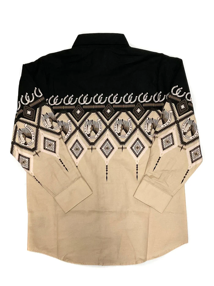 Panhandle Boy’s Brown Aztec Border Horseshoe Snap Long Sleeve