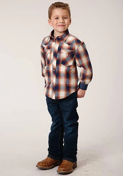 Roper Boy’s Cream/Blue/Orange Plaid Snap Long Sleeve