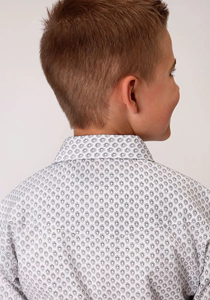 White, Black and Grey Teardrop Print Long Sleeve Snap Front Shirt.