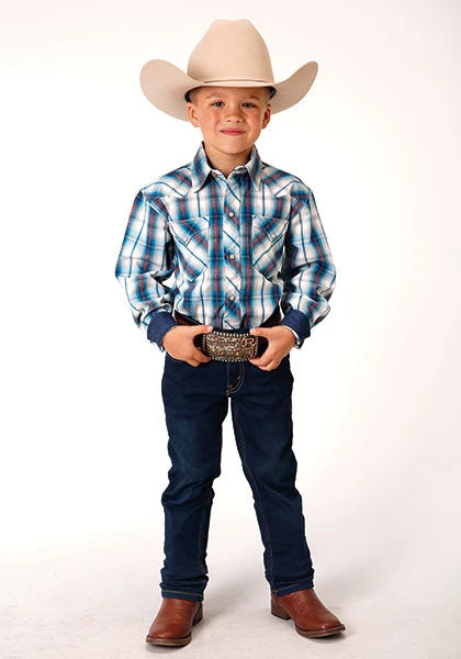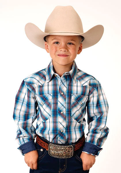 Blue Plaid Long Sleeve Snap Front Shirt.