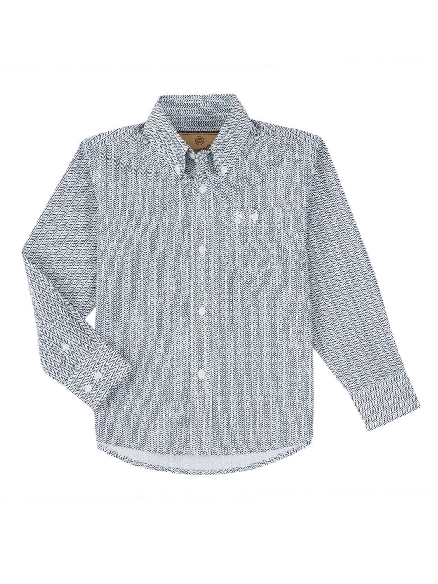 Navy and White Patterned Long Sleeve Button Down Shirt.