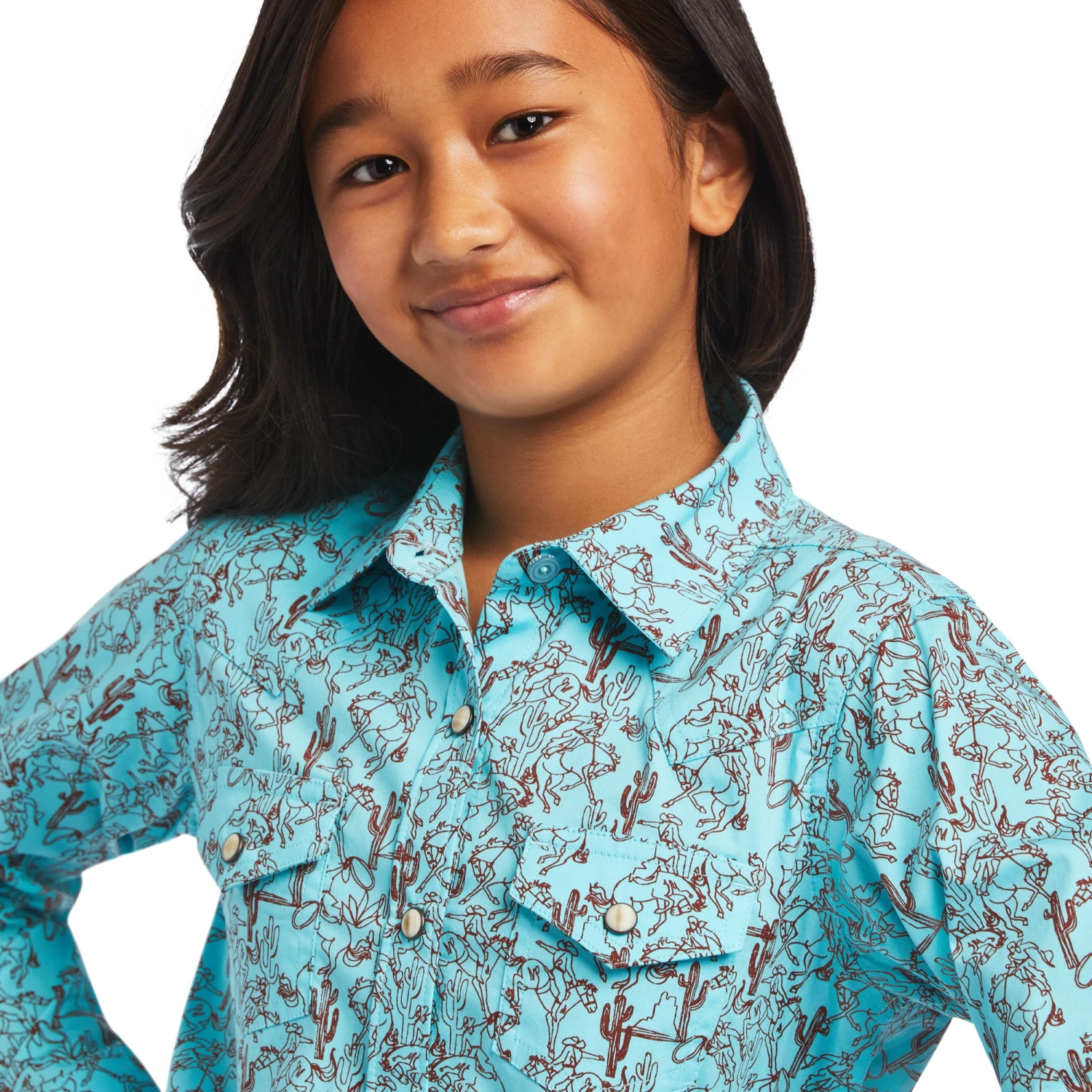 Amazonite Bucking Bronc Print Long Sleeve R.E.A.L. Snap Front Shirt.