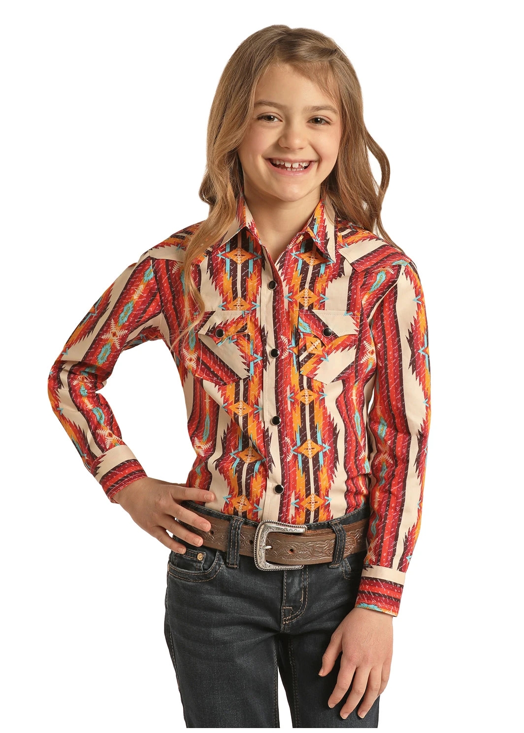 Burgundy Aztec Print Long Sleeve Snap Front Shirt.