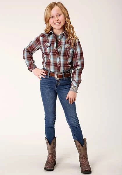 Roper Girl’s Brown & Blue Plaid Snap Long Sleeve